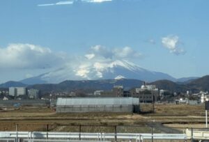 鬼怒川にかかる橋あたりから富士山が小さく見えてきます